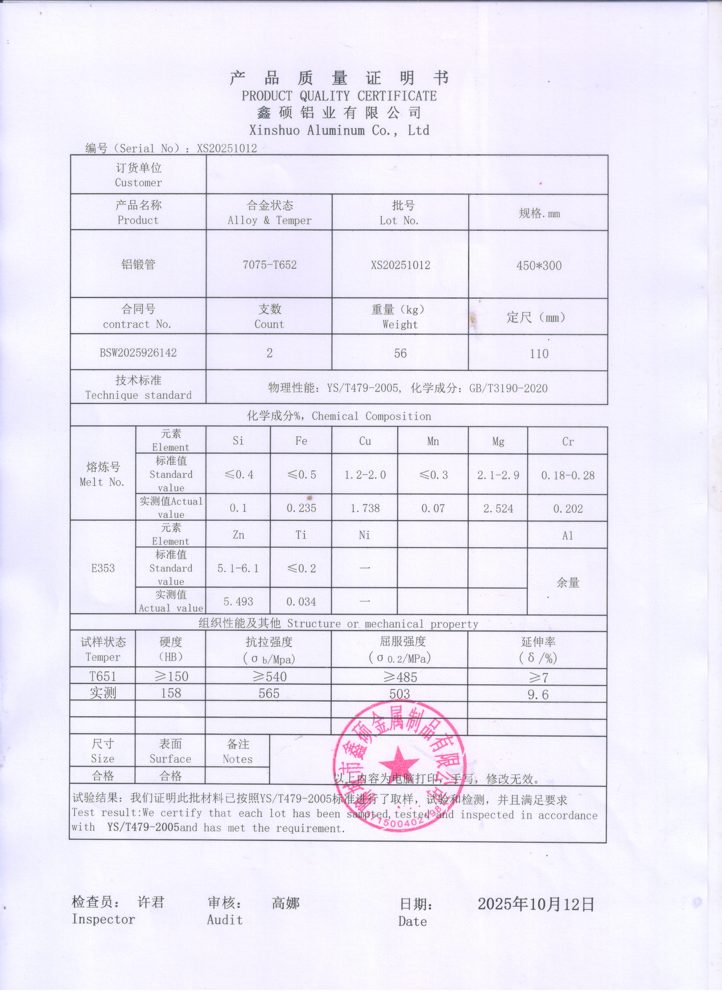 材料標(biāo)準(zhǔn): 國標(biāo)GB/T 4437.1,美標(biāo)ASTM B241/B241M